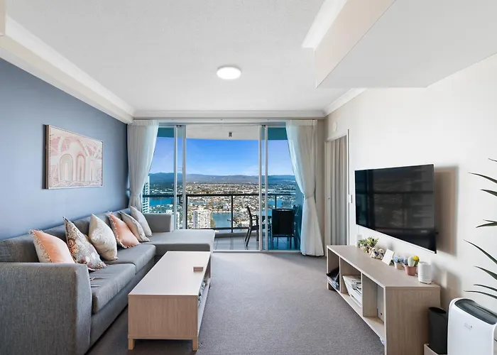Skyline Escape 2 Bedroom Balcony Views, Pools & Spa apartment offers a balcony and a seating area with views of the city and comforts like climate control. For added convenience, a separate toilet and a shower are available at this accommodation. Furthermore, you can enjoy dryers and towels provided in the bathroom.